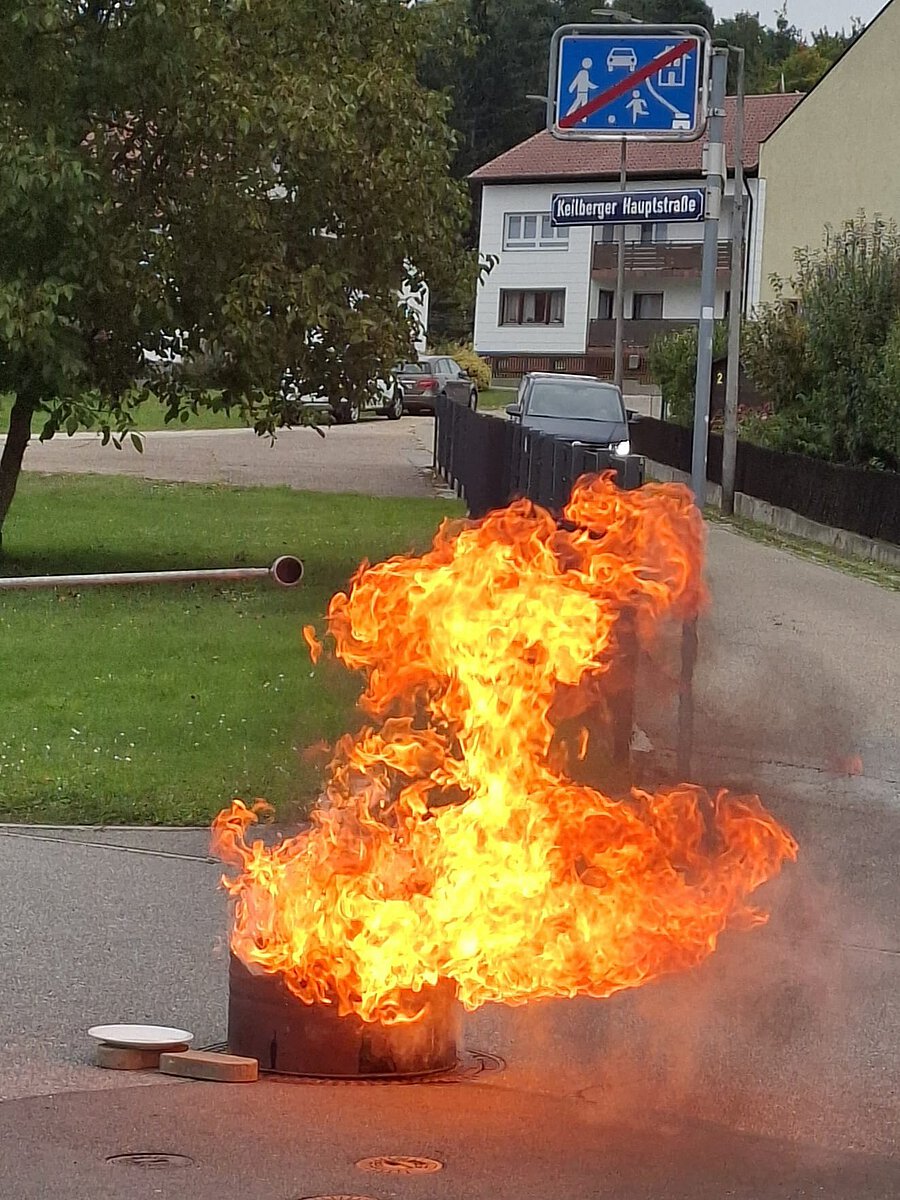 Die Demonstration einer Fettexplosion zeigte, wie gefährlich es sein kann, brennendes Fett mit Wasser zu löschen – und wie wichtig das richtige Verhalten im Brandfall ist.
